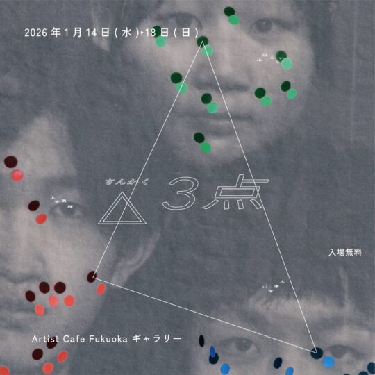 本展示は、九州大学芸術工学部未来構想デザインコースに所属する現代美術専攻の4年生3名、上手勇輝、山田みらい、山本孝太による合同展示です。